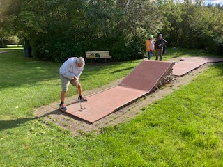 Höst,  28 september till flaggtävlingen, max 90 slag, man måste håla ut, masstart 2 varv sedan ett varv då alla startar från ettan. Den som tar sig längst på banan vinner.  Trettiotre spelsugna bangolfare hade tagit sig till bangolfparken. Kyligt i luften men, varmt och skönt när solen tittade fram. Inte helt oväntat blev det rätt långsamt spel, med många slag på vissa banor, men humöret var på topp, trots att två varv tog nästan tre timmar för en del. Till slut var det ungefär hälften av deltagarna som startade tredje varvet. Efter att alla startat tredje varvet fick fler och fler kliva av banan efter att ha uppnått 90 slag. På hål tio var det bara Benno och Stefan kvar som utkämpade en envis jämn kamp ingen ville ge sig. Det tog ända till hål femton innan Benno kunde stå som segrare med ett slag mindre än Stefan.